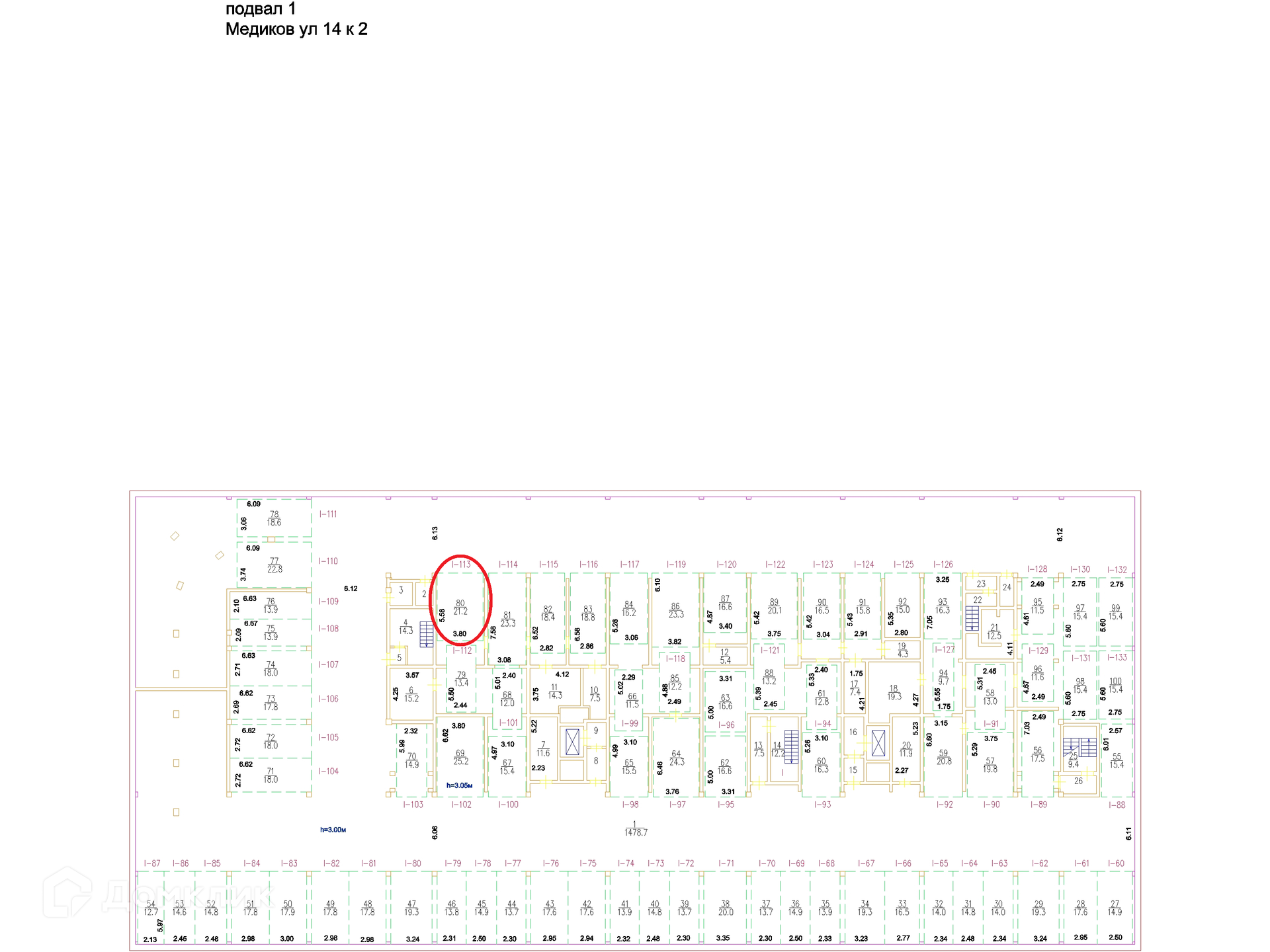 Общая площадь 21.2 м2
