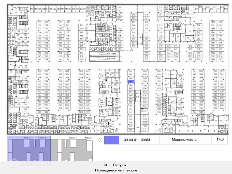 Машиноместо в подземном паркинге, 14.3 м2, на продажу в Москве, 1-й квартал, к1