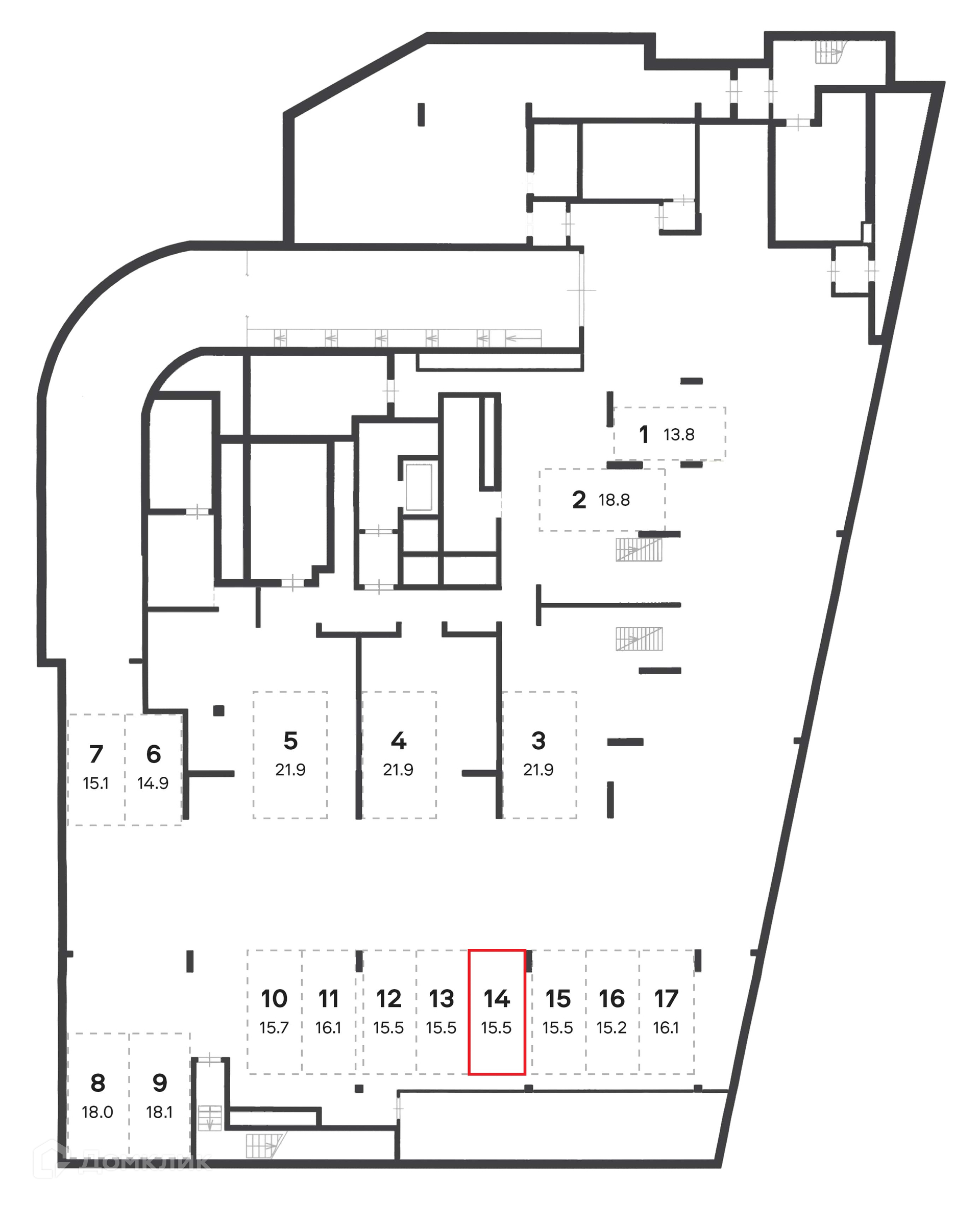Общая площадь 15.5 м2