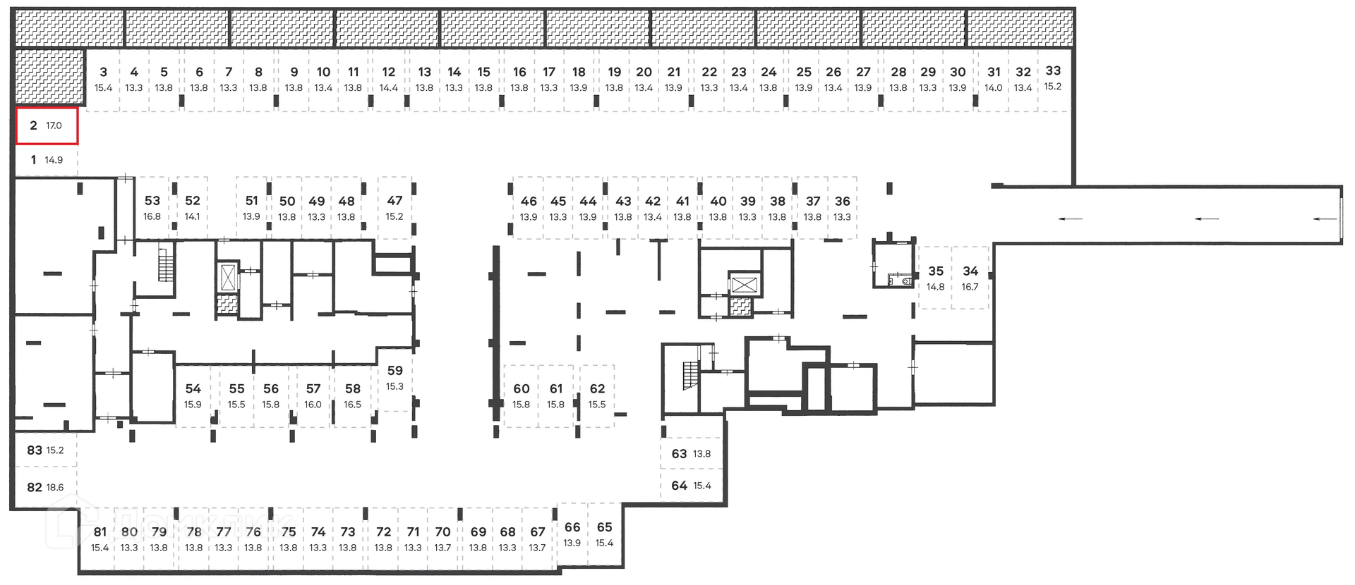 Общая площадь 17 м2