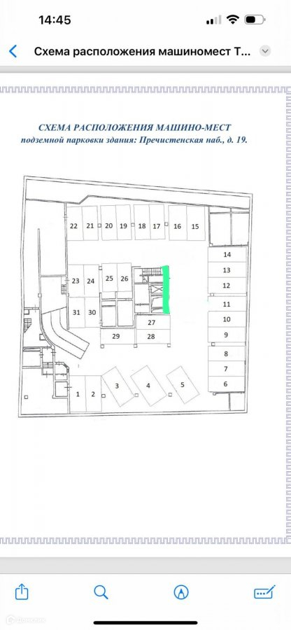 Машиноместо в подземном паркинге, 14 м2, на продажу в Москве, Пречистенская набережная, 19