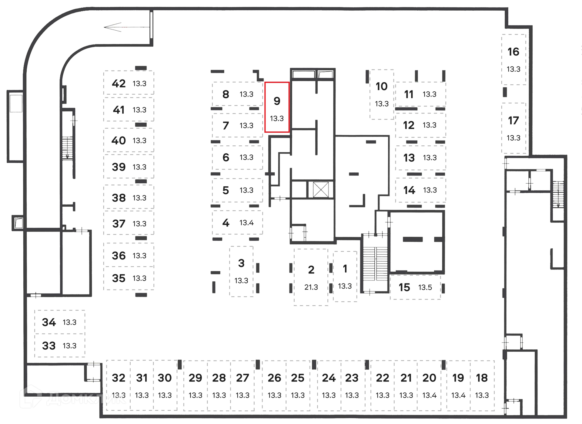 Общая площадь 13.3 м2