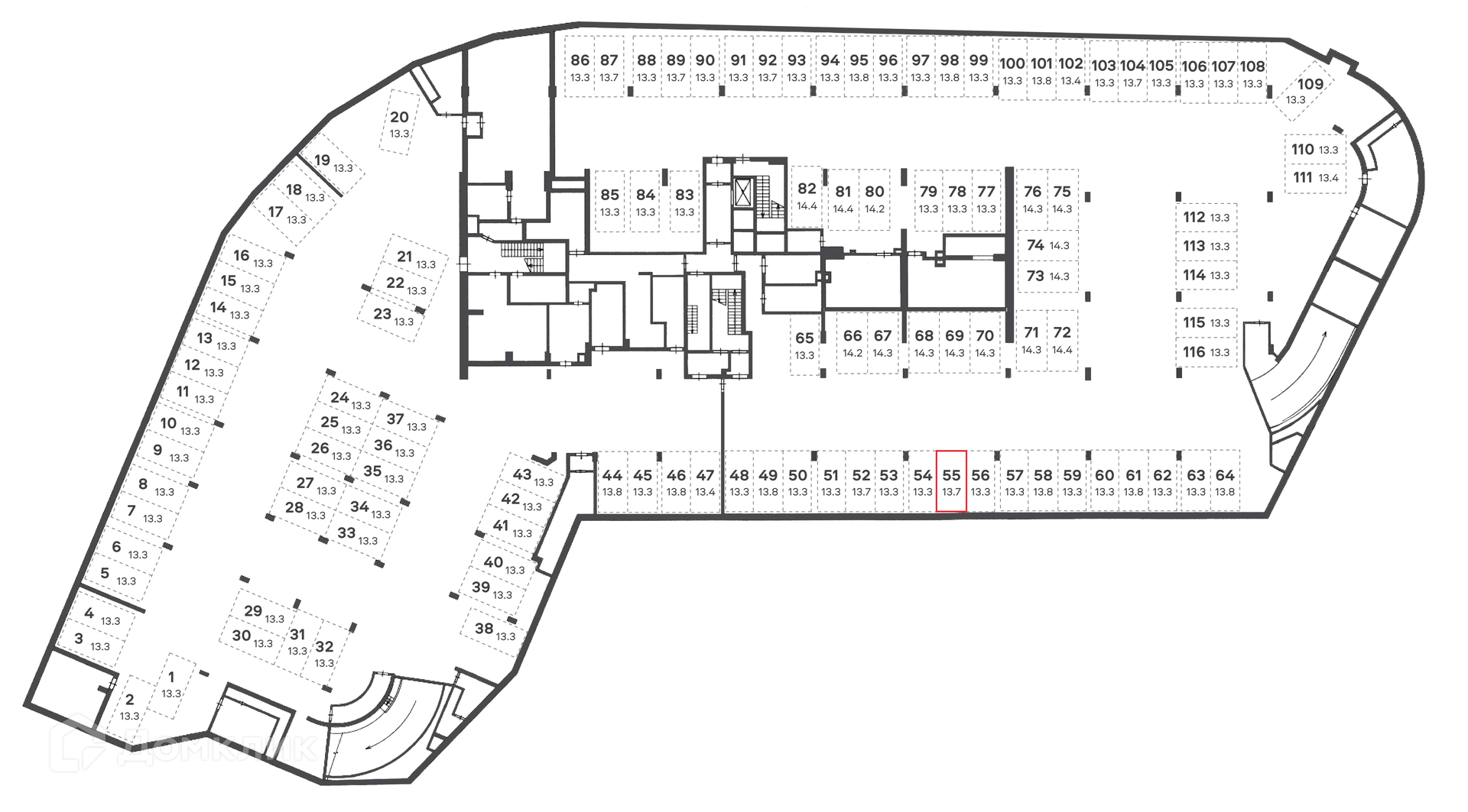 Общая площадь 13.7 м2