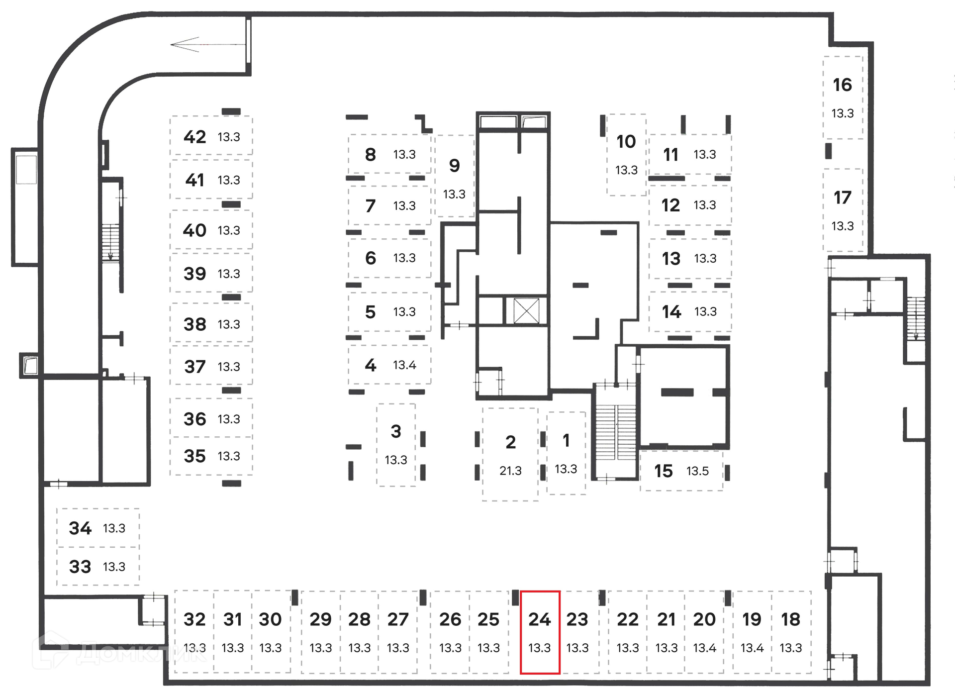 Общая площадь 13.3 м2