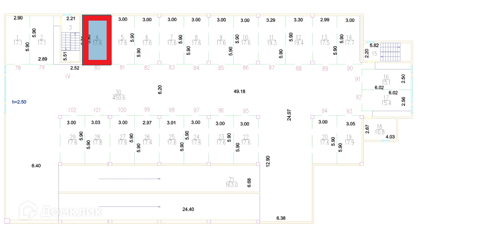 Общая площадь 17.6 м2