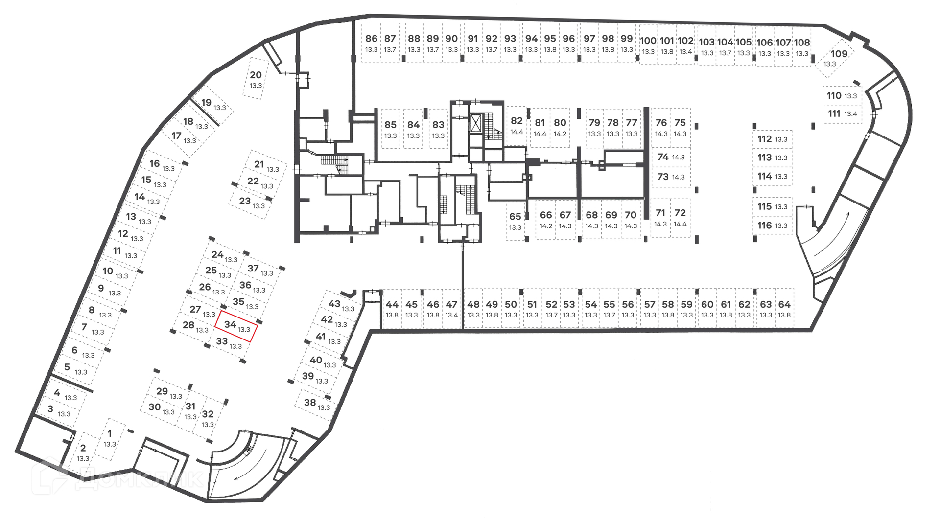Общая площадь 13.3 м2