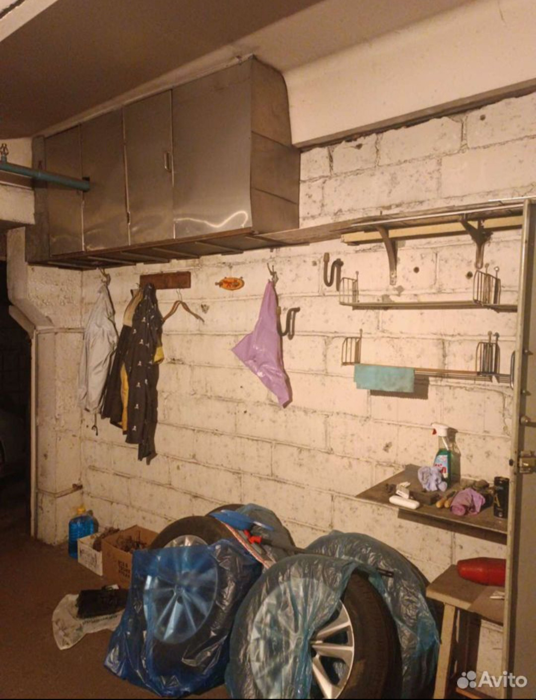 Гараж тёплый, имеются самодельные отсеки для хранения, свет, электричество