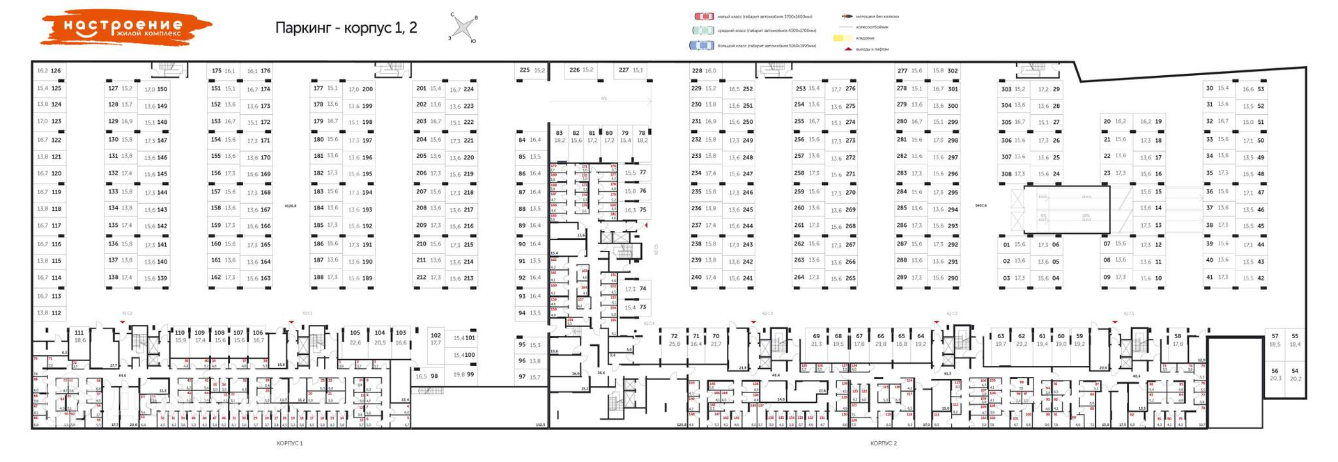 Машиноместо номер 194 общей площадью 15.5 кв.м. на -1-м этаже в ЖК «Настроение».