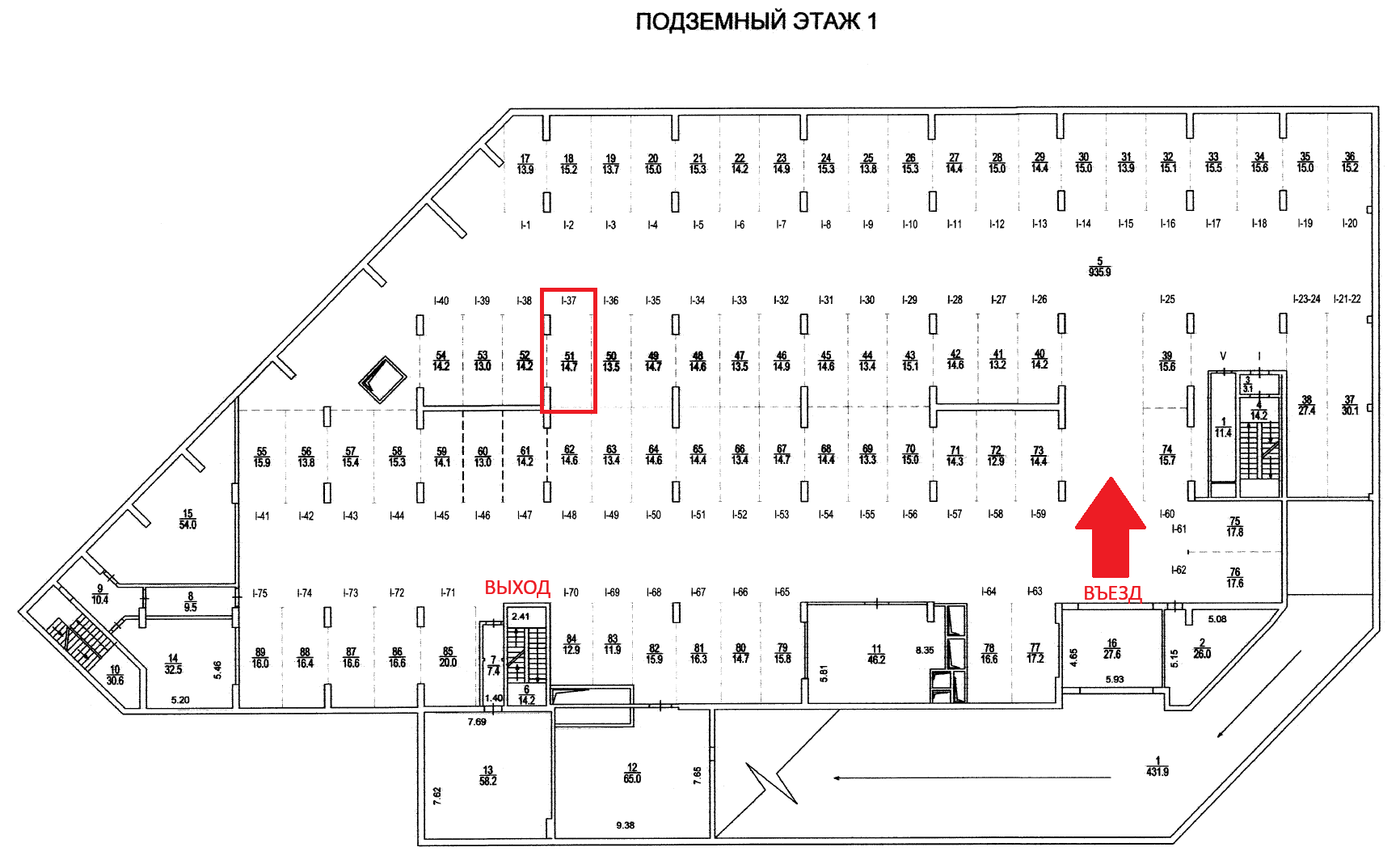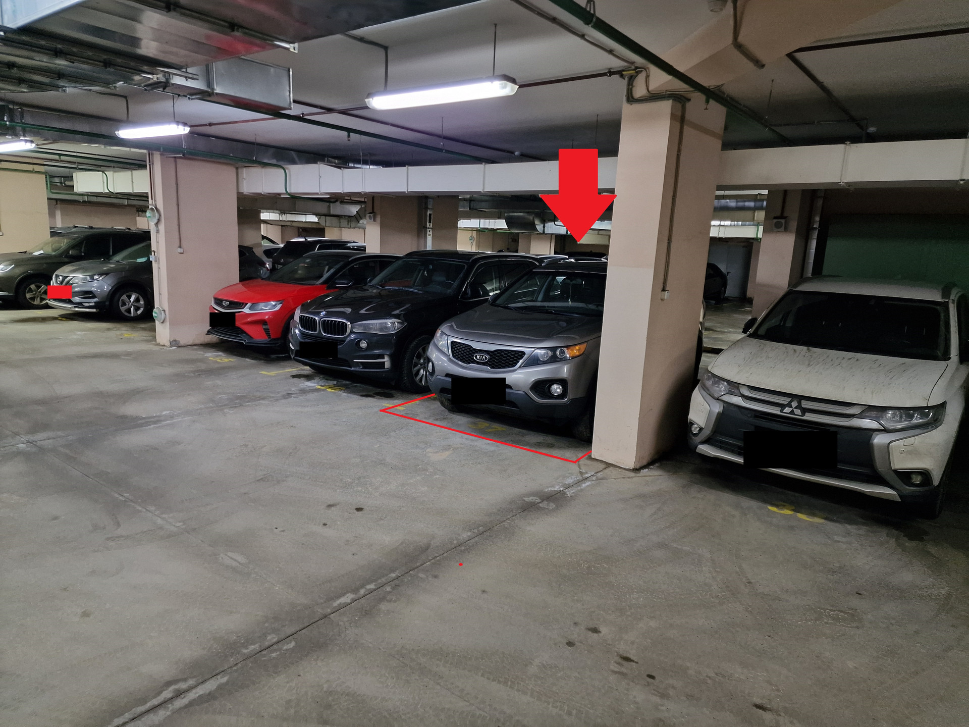 Площадь машино-места 15 кв.м. - можно разместить практически любой автомобиль высотой не более 2,2 м. Машино-место расположено в удобной части этажа на достаточном удалении от въезда, чтобы мимо постоянно не ездили другие автомобили. Колонна с водительской стороны дает дополнительное место для открывания двери. Выход из гаража также расположен достаточно близко.