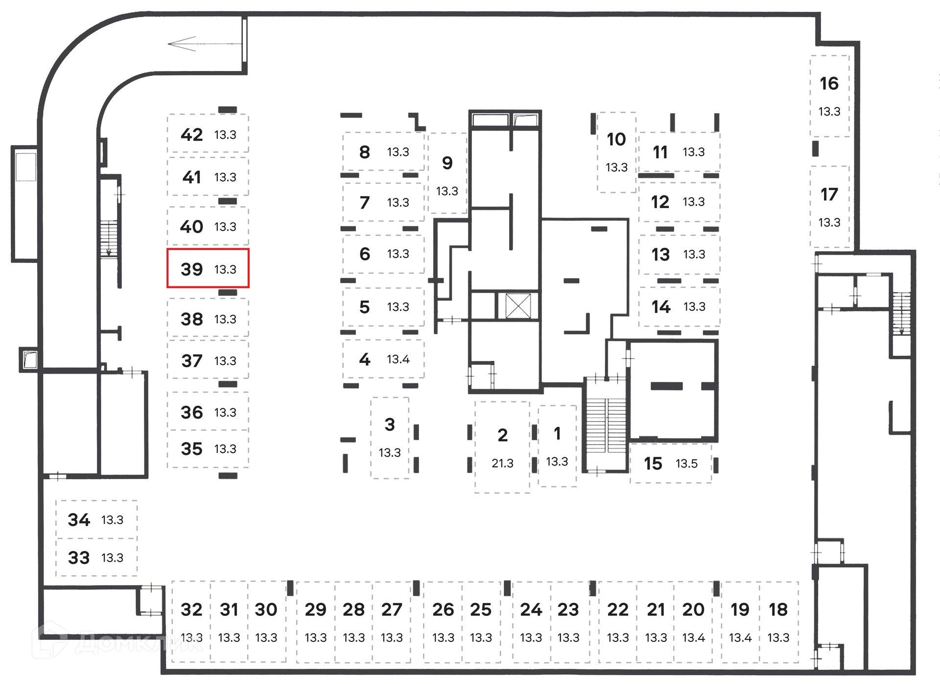 Общая площадь 13.3 м2