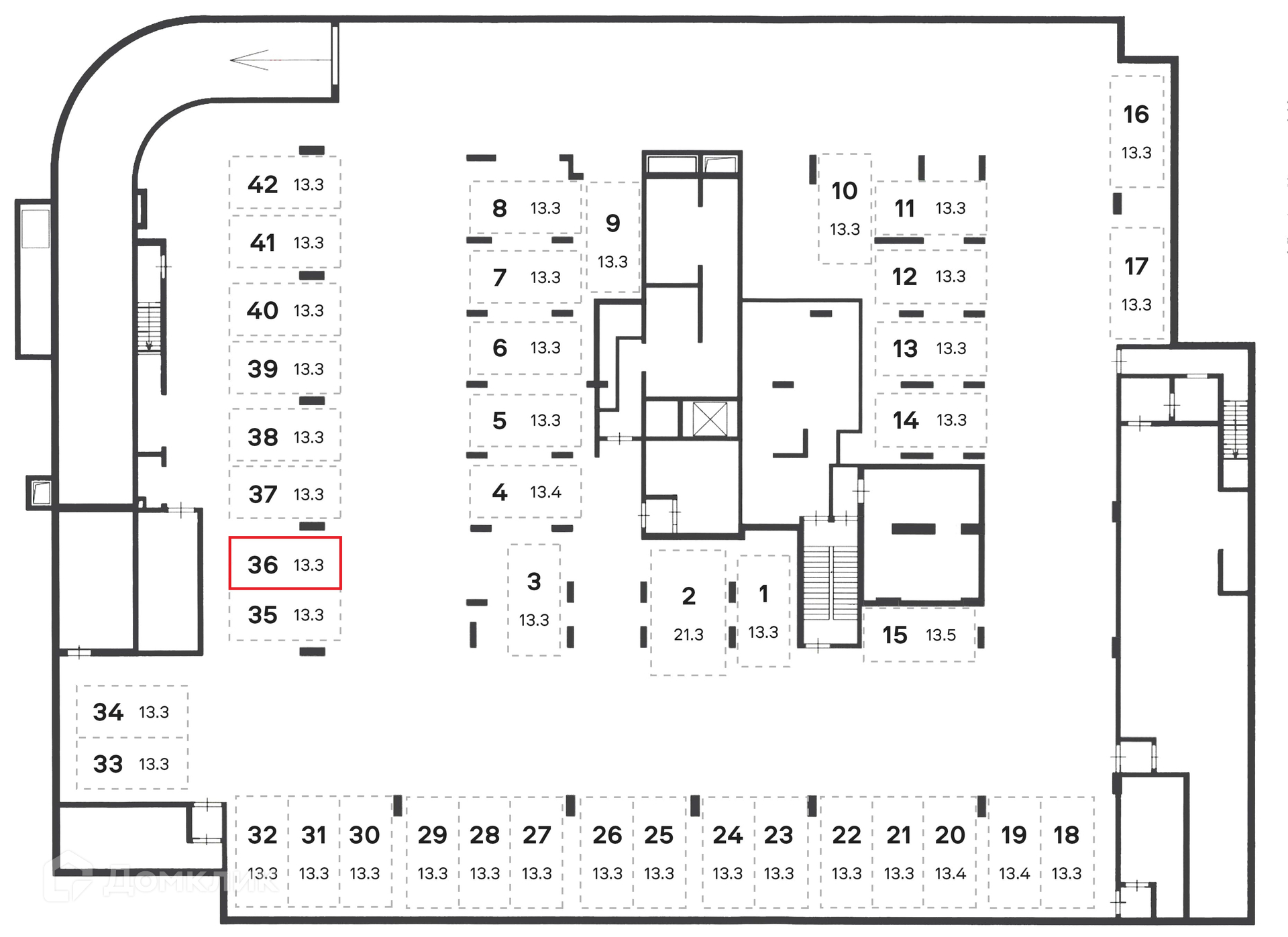 Общая площадь 13.3 м2