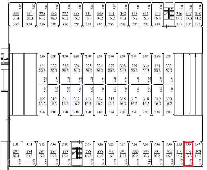 Общая площадь 13.3 м2