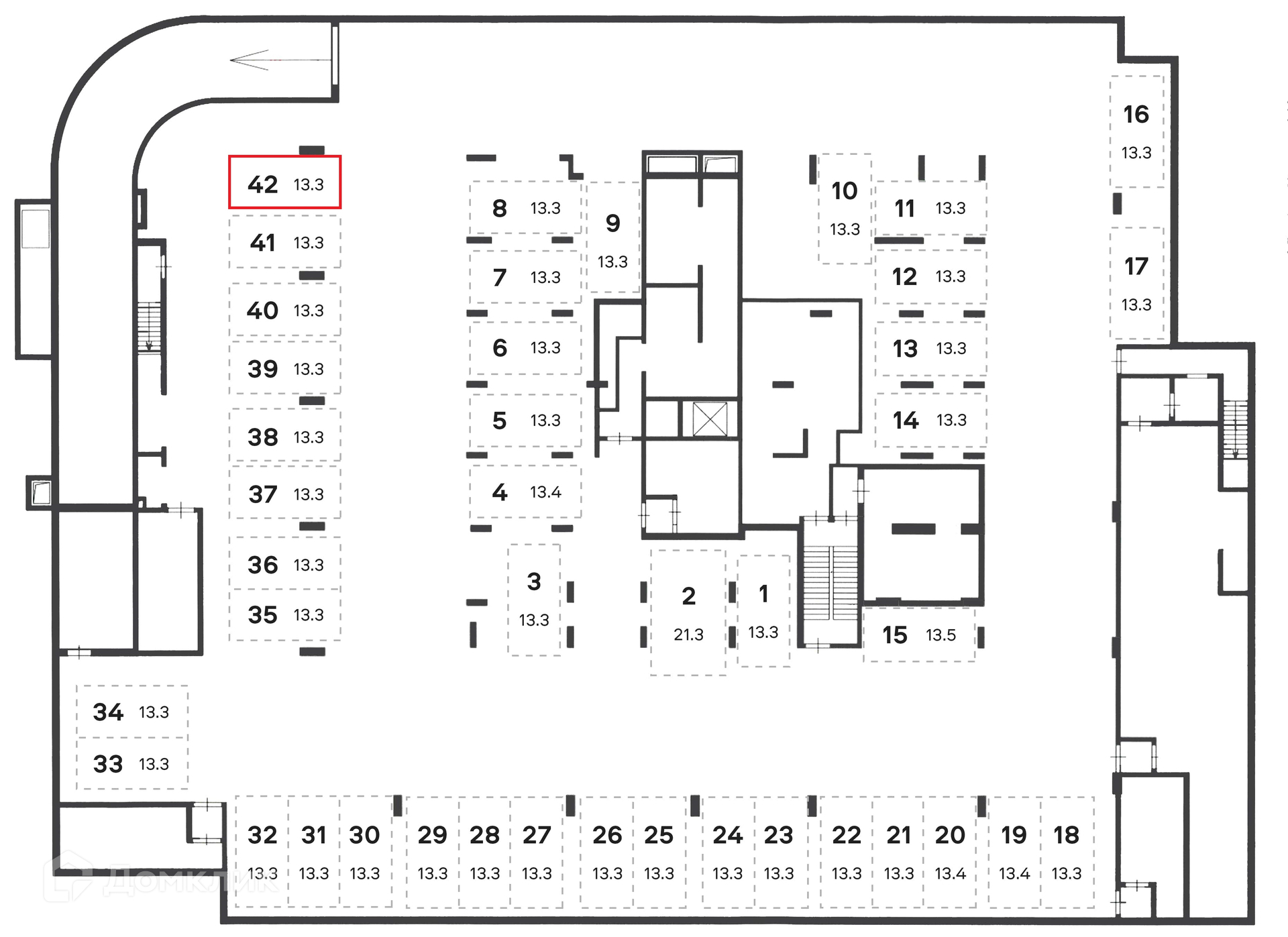 Общая площадь 13.3 м2