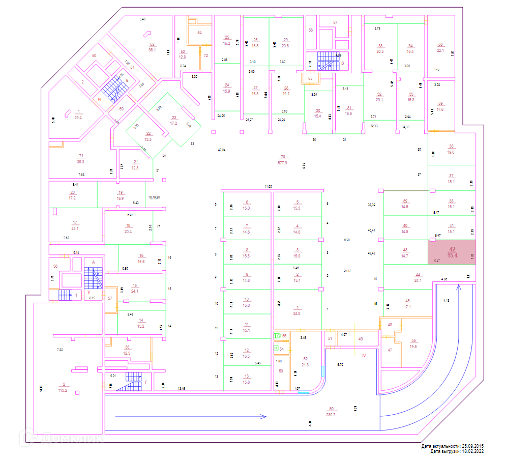 Общая площадь 15.4 м2