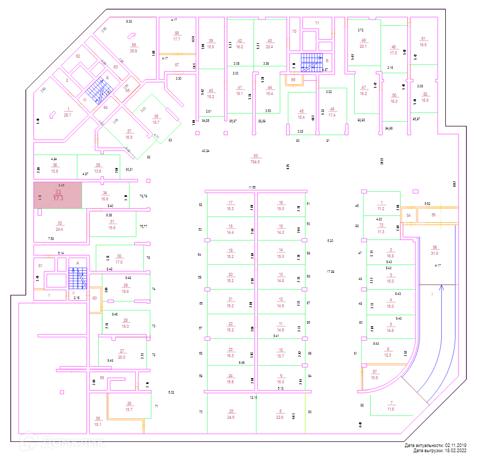 Общая площадь 17.3 м2