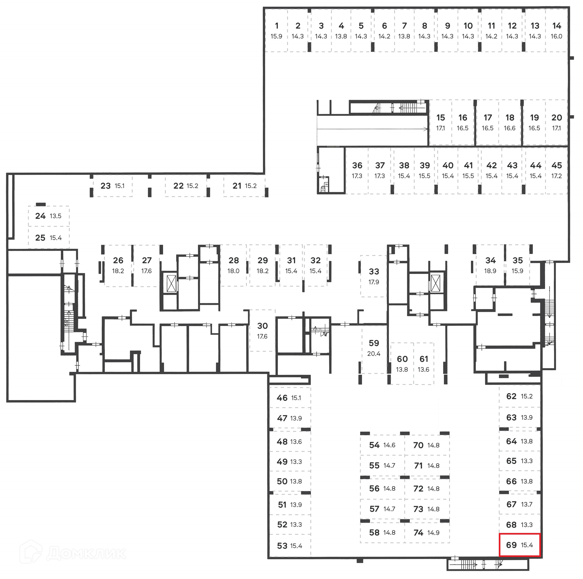 Общая площадь 15.4 м2