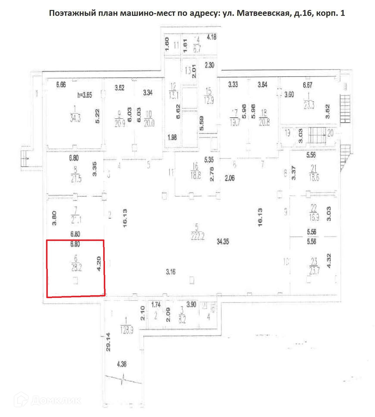 Машиноместо, 28.2 м2, на продажу в Москве, Матвеевская улица, 16к1