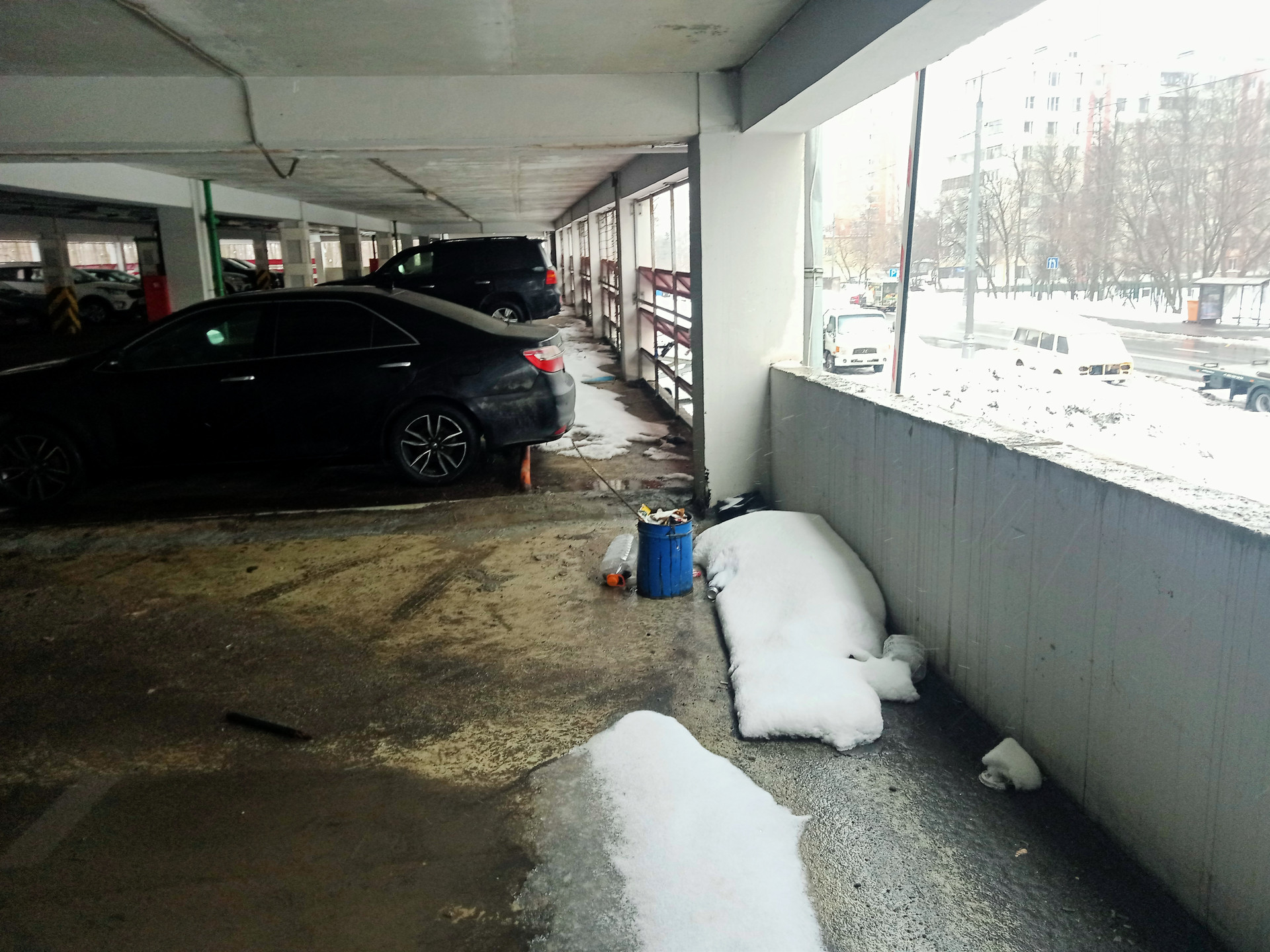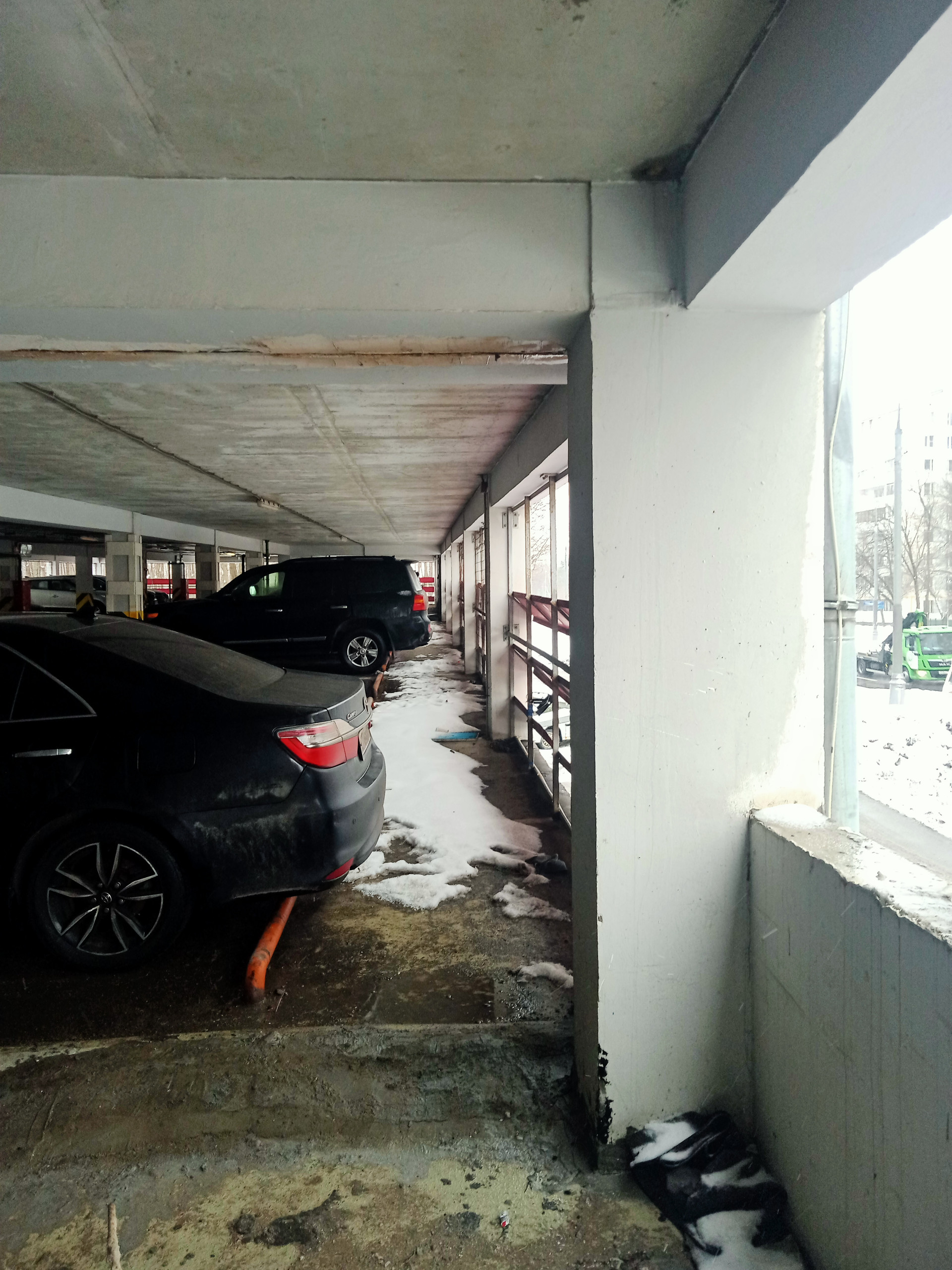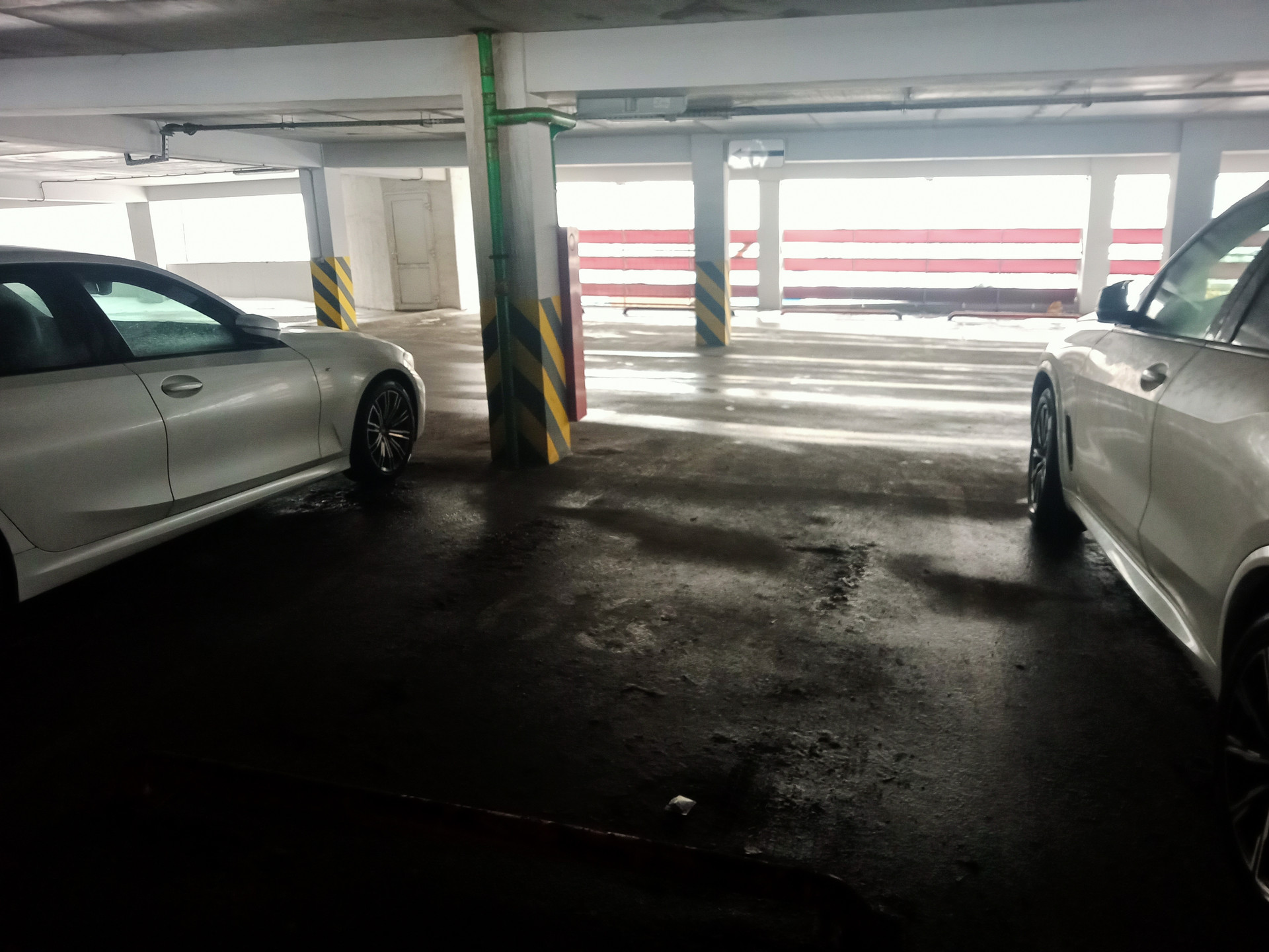 Чтобы вы могли сориентироваться по фото, машиноместо расположено рядом с белым БМВ.
