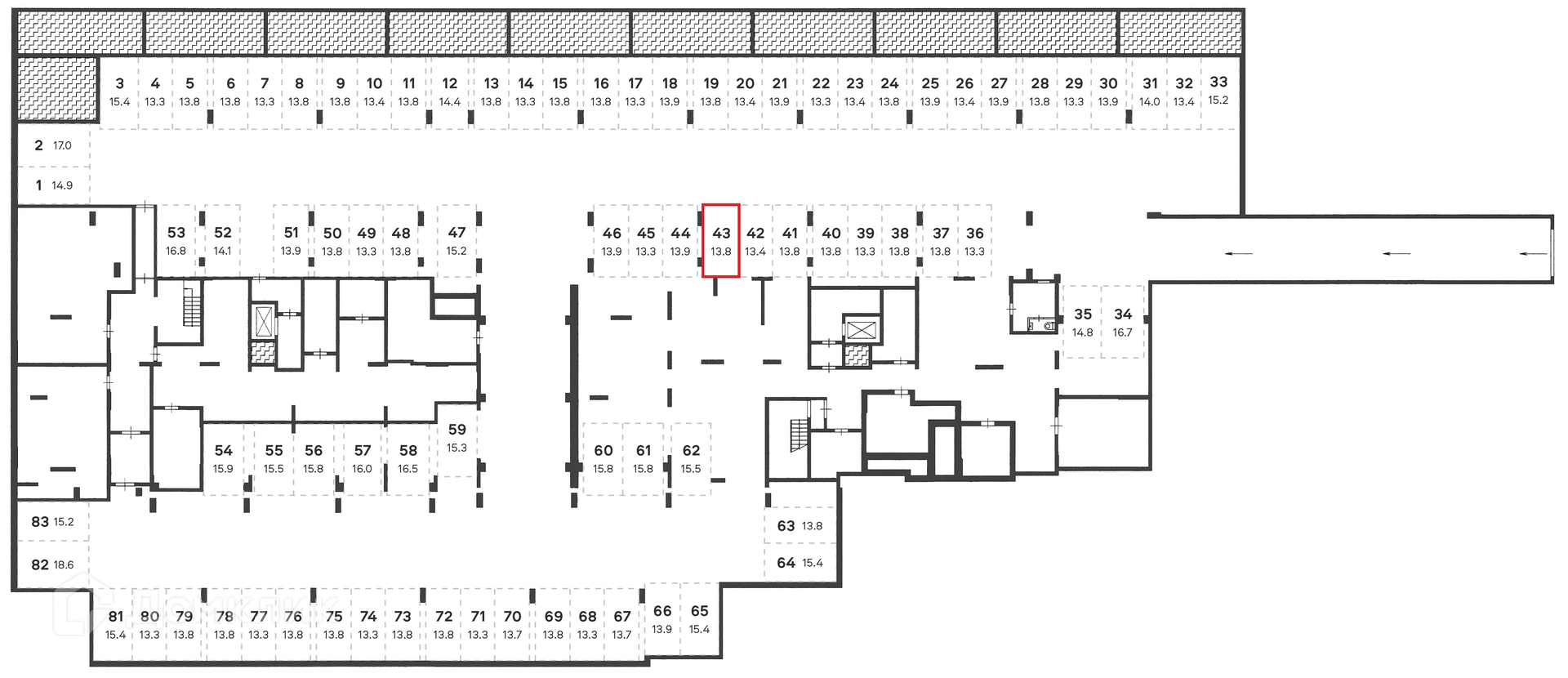 Общая площадь 13.8 м2