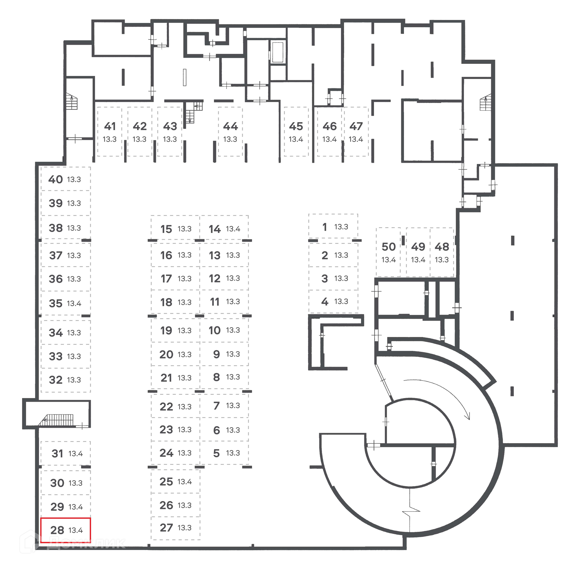Общая площадь 13.4 м2
