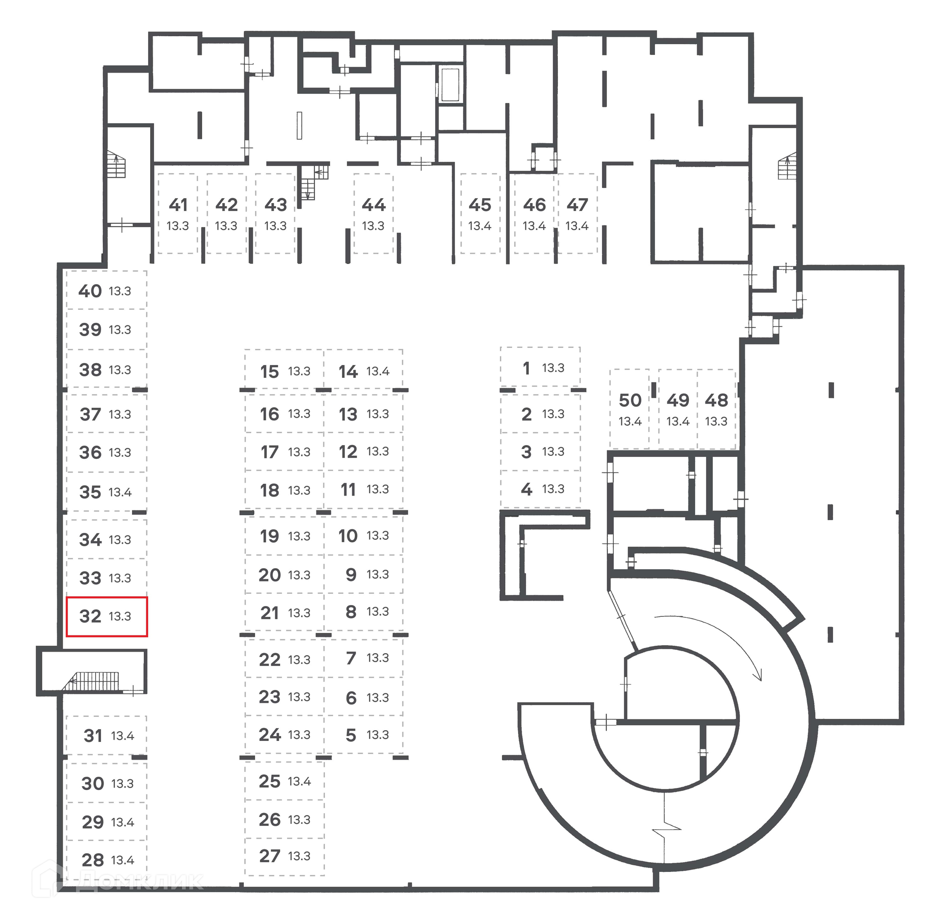 Общая площадь 13.3 м2