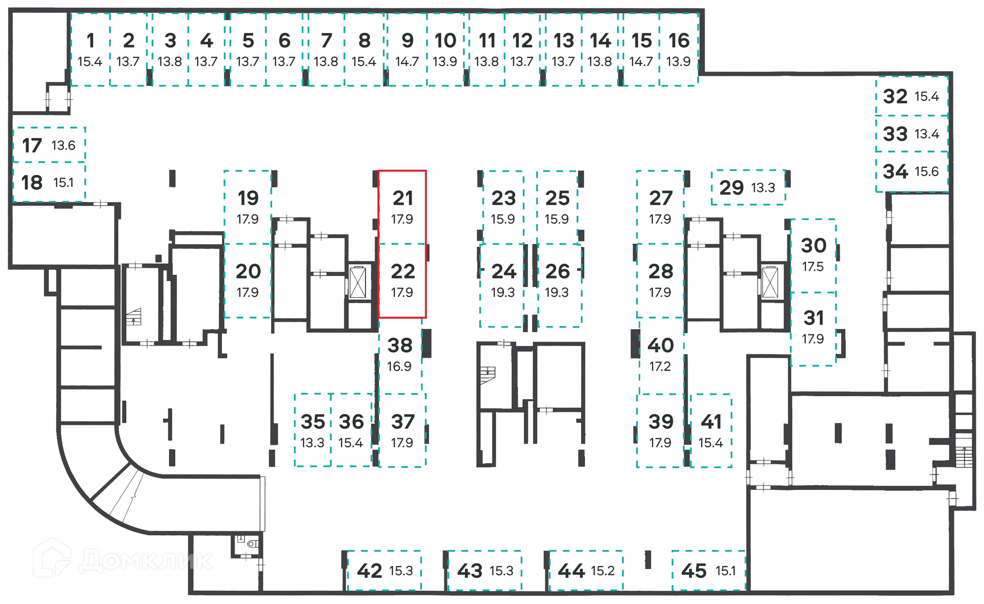 Общая площадь 35.8 м2