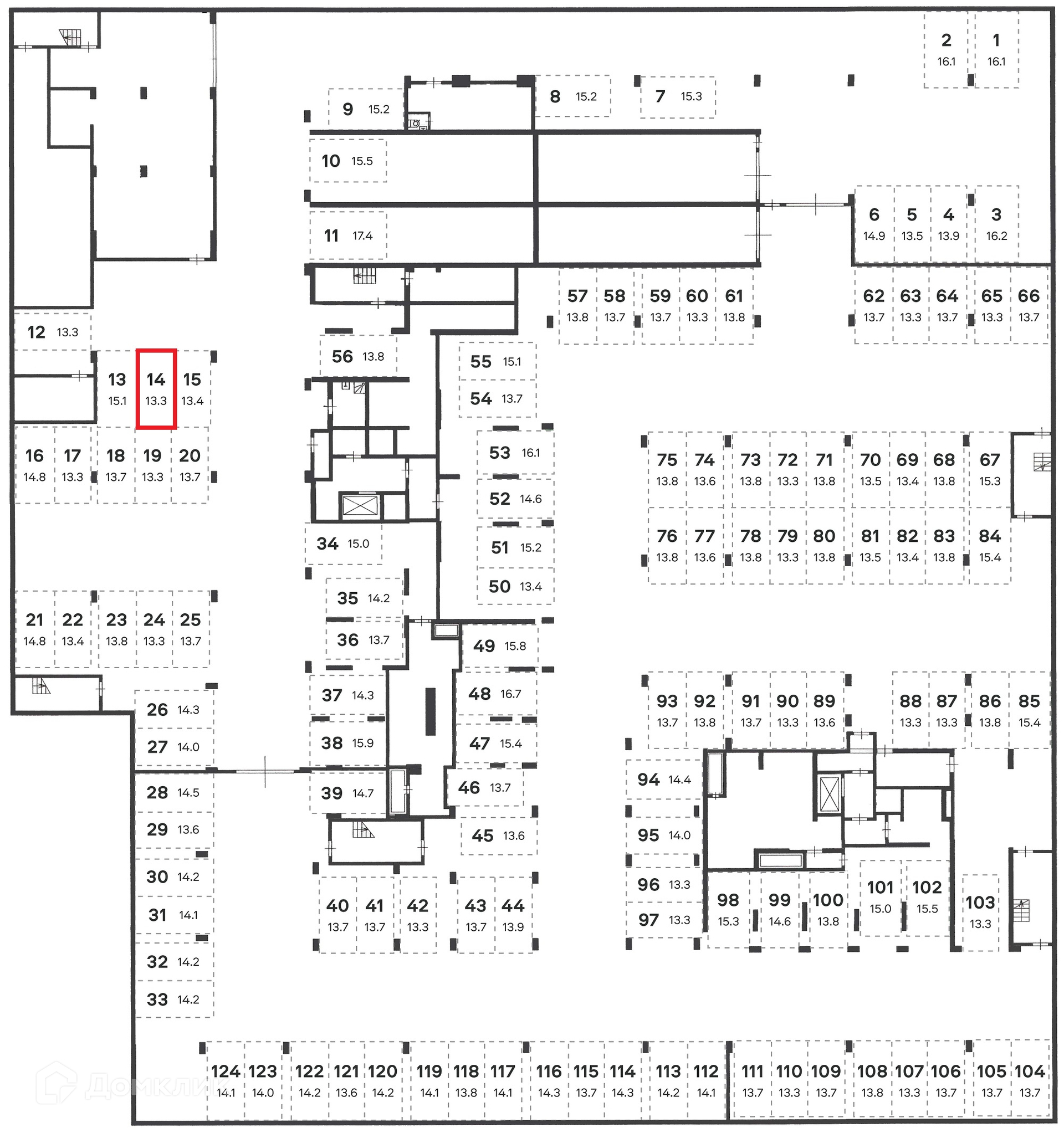 Общая площадь 13.3 м2