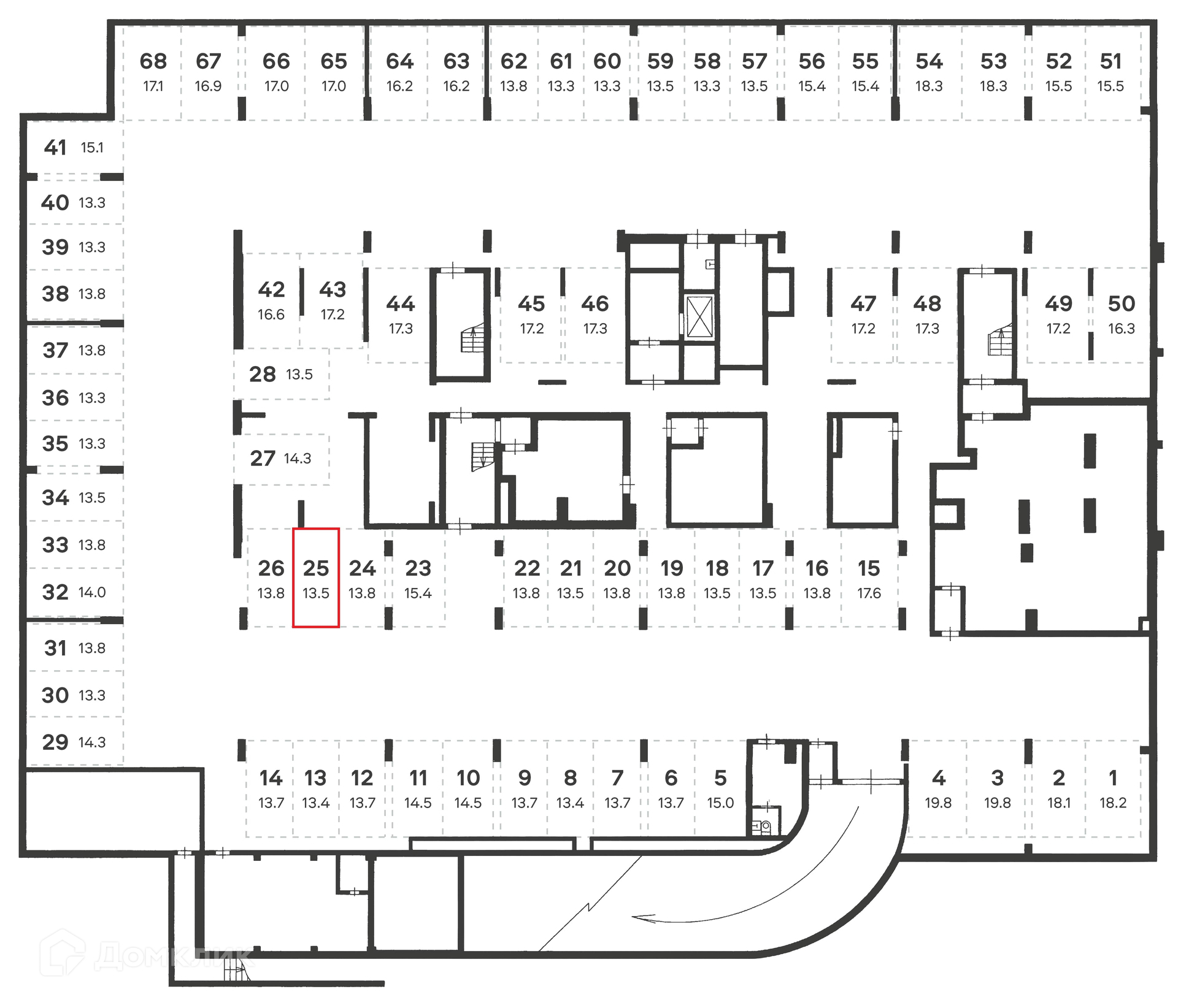Общая площадь 13.5 м2