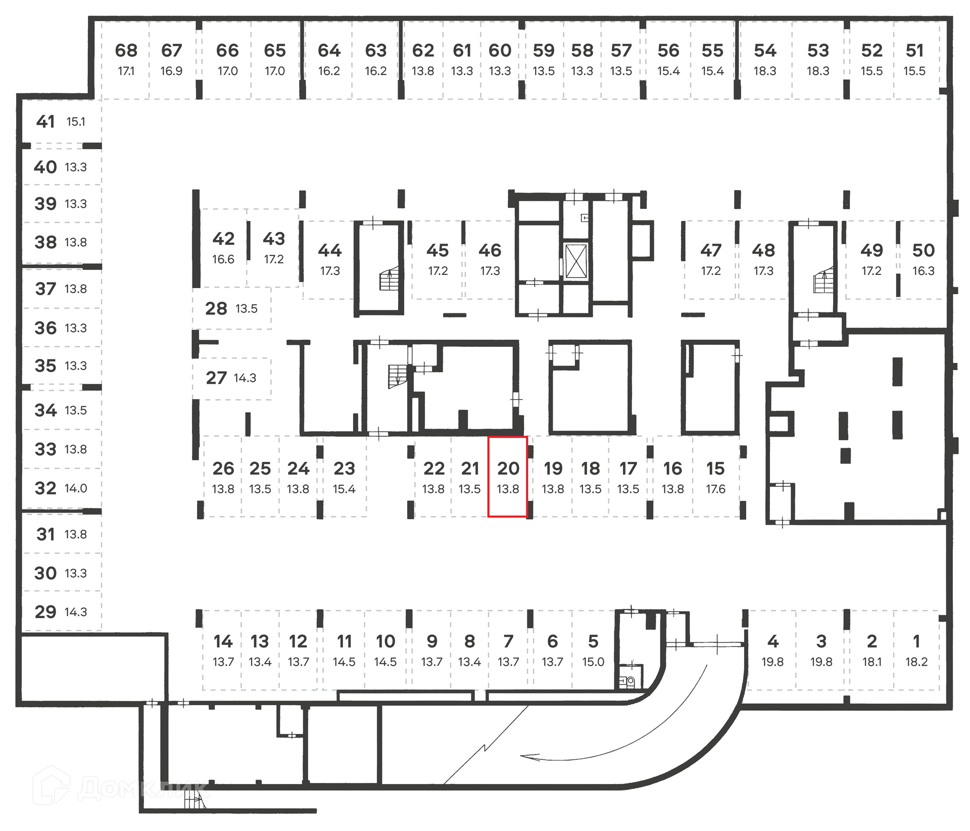Общая площадь 13.8 м2