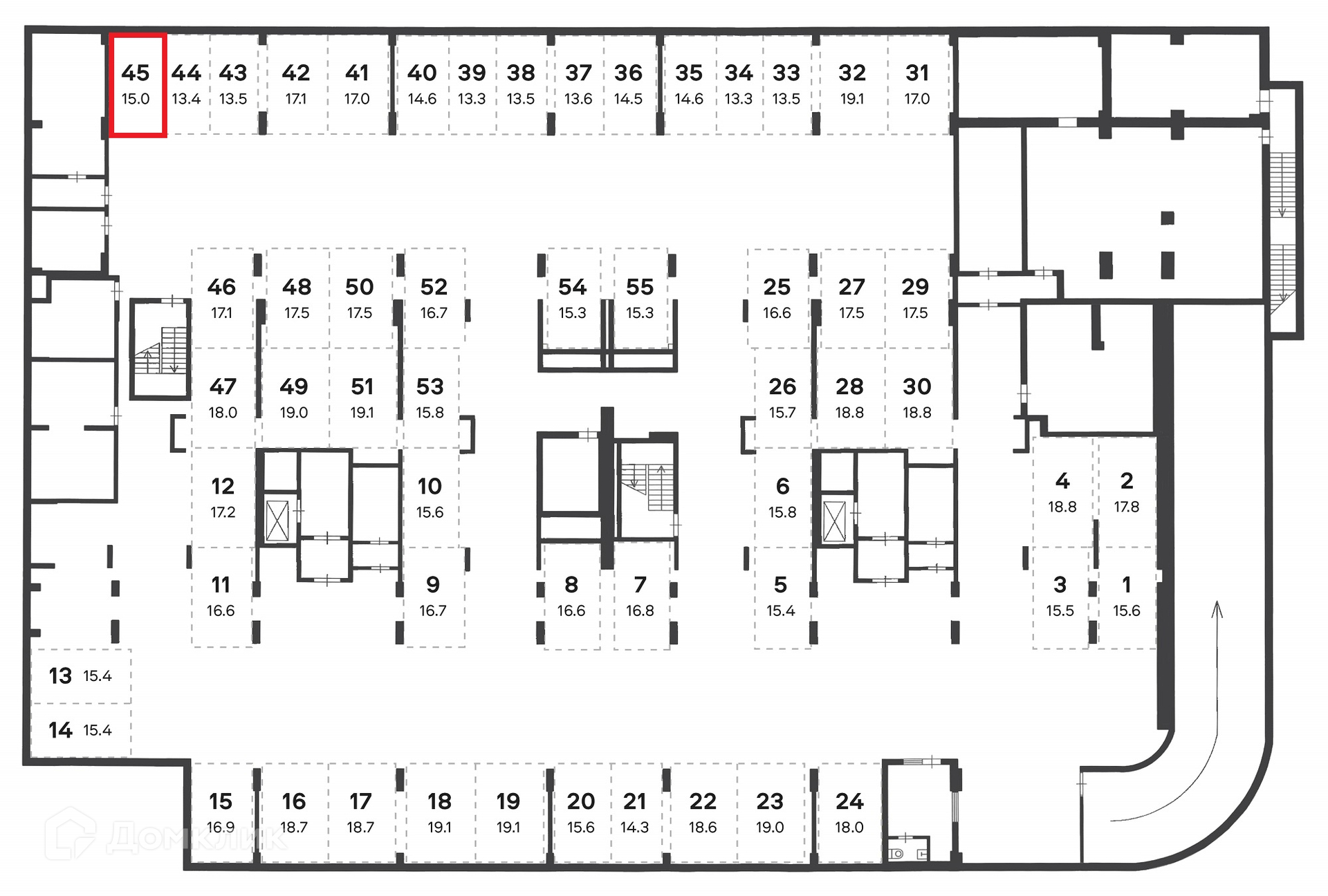 Общая площадь 15 м2