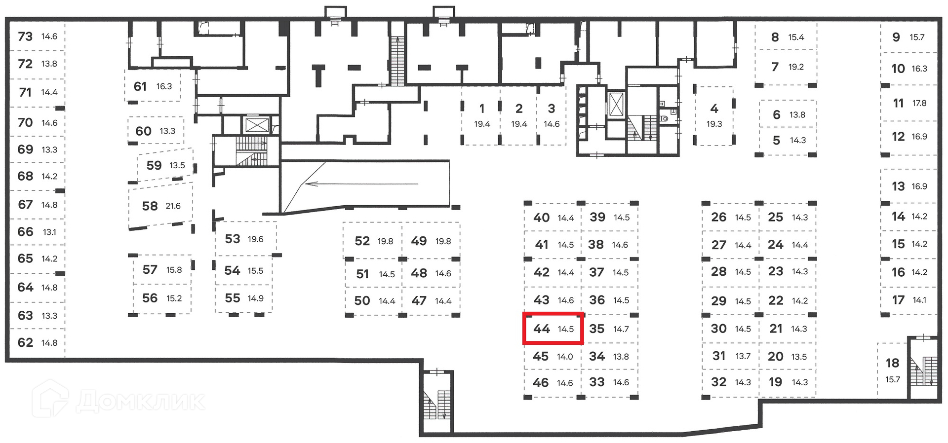 Общая площадь 14.5 м2