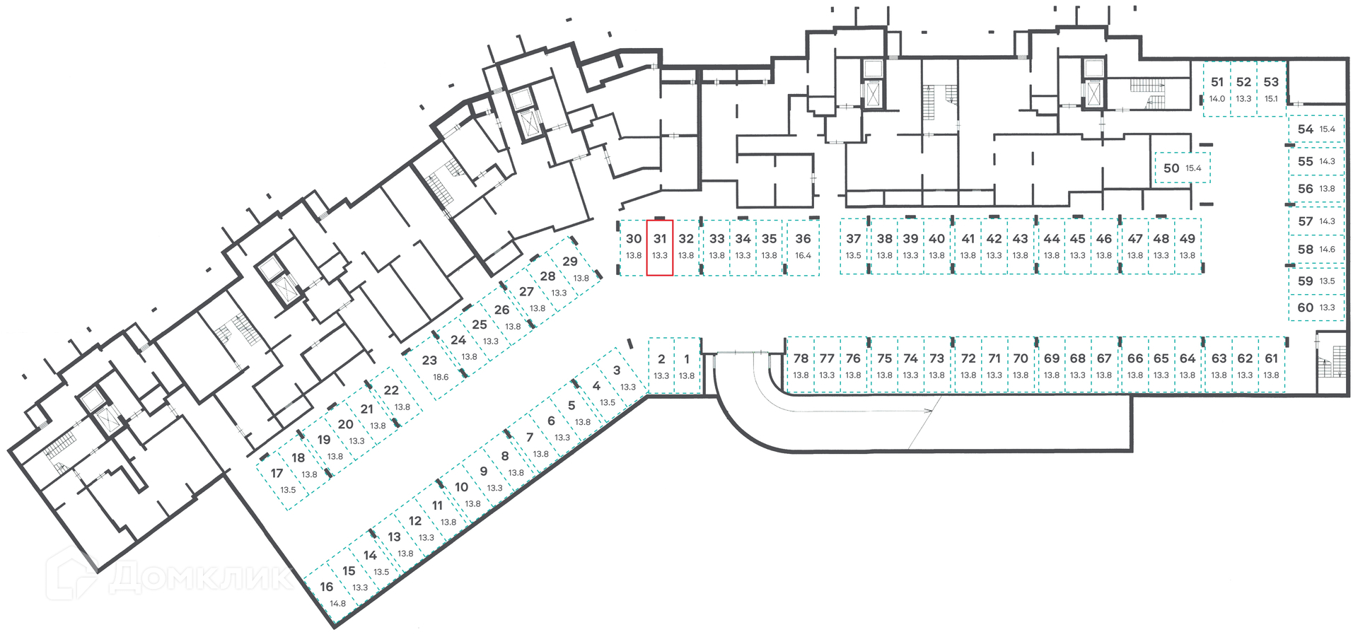 Общая площадь 13.3 м2