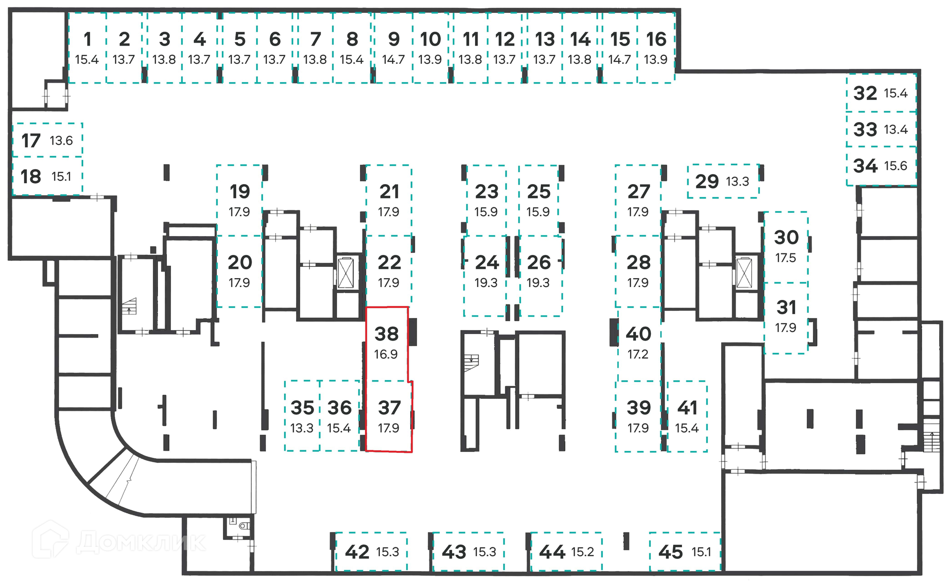 Общая площадь 34.8 м2