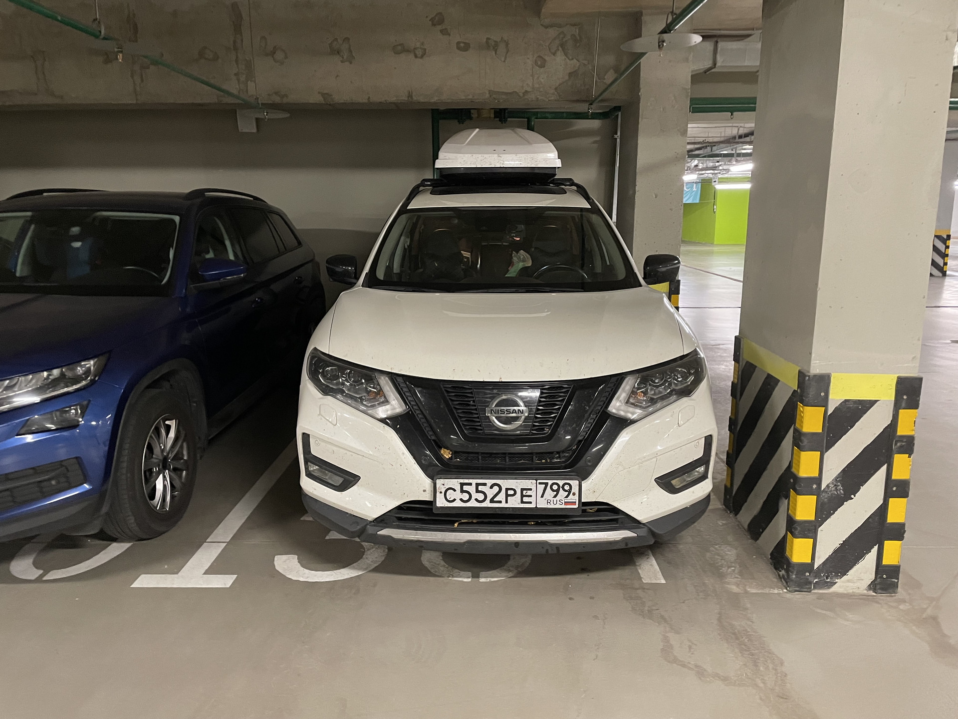 Быстрый выезд из паркинга. Место сухое, без протечек. На столбе есть розетка.