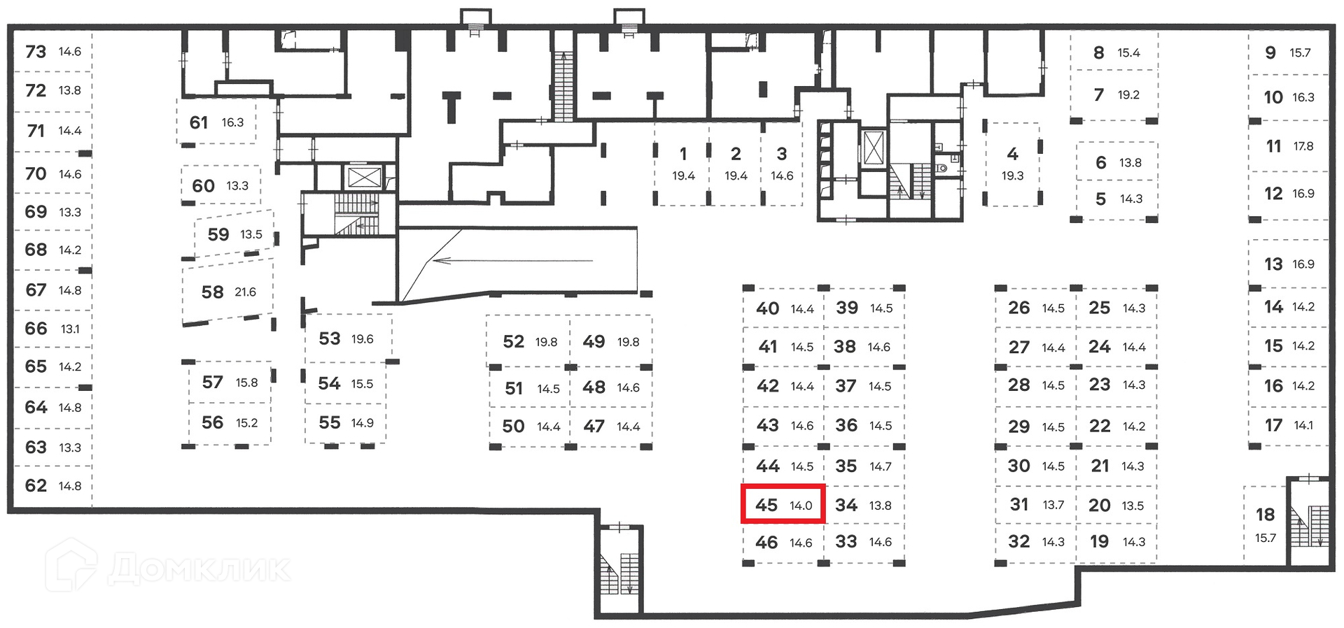 Общая площадь 14 м2