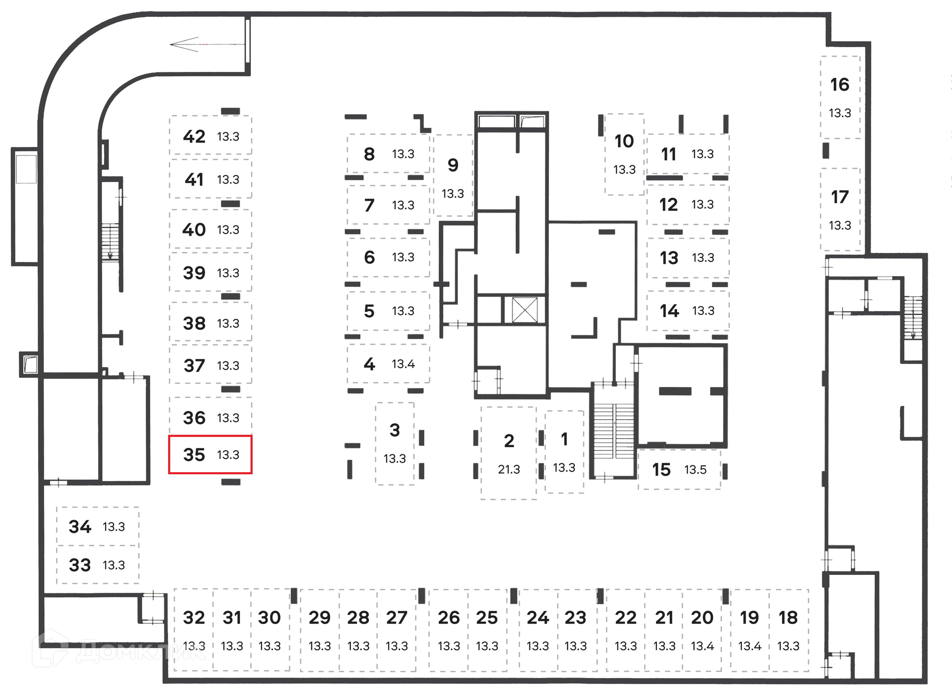 Общая площадь 13.3 м2
