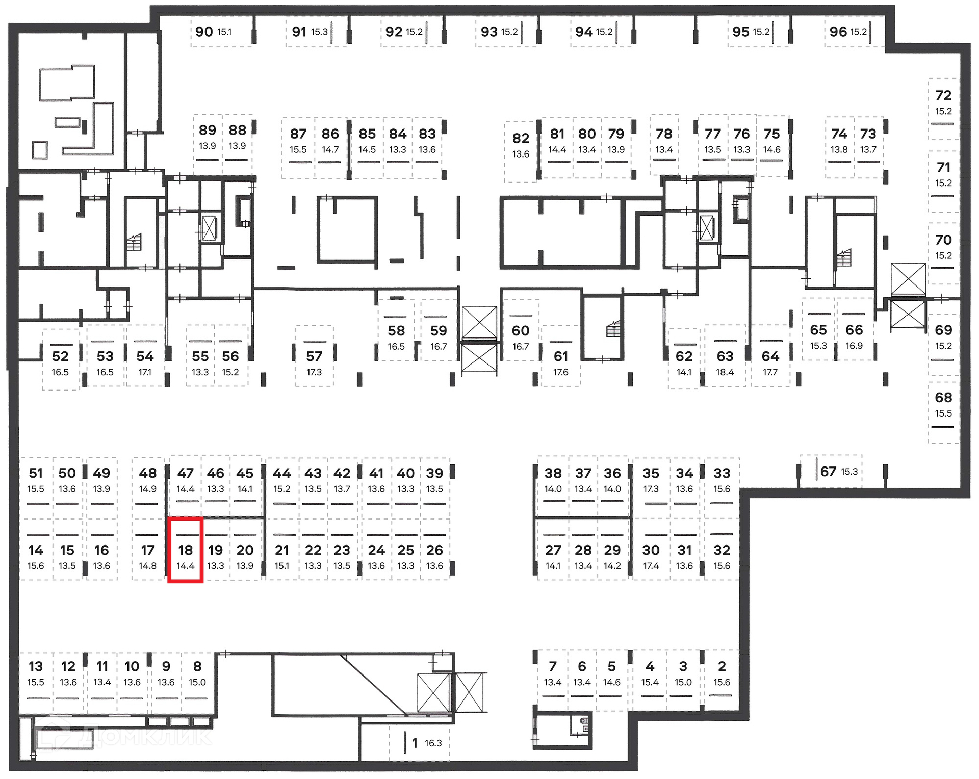 Общая площадь 14.4 м2