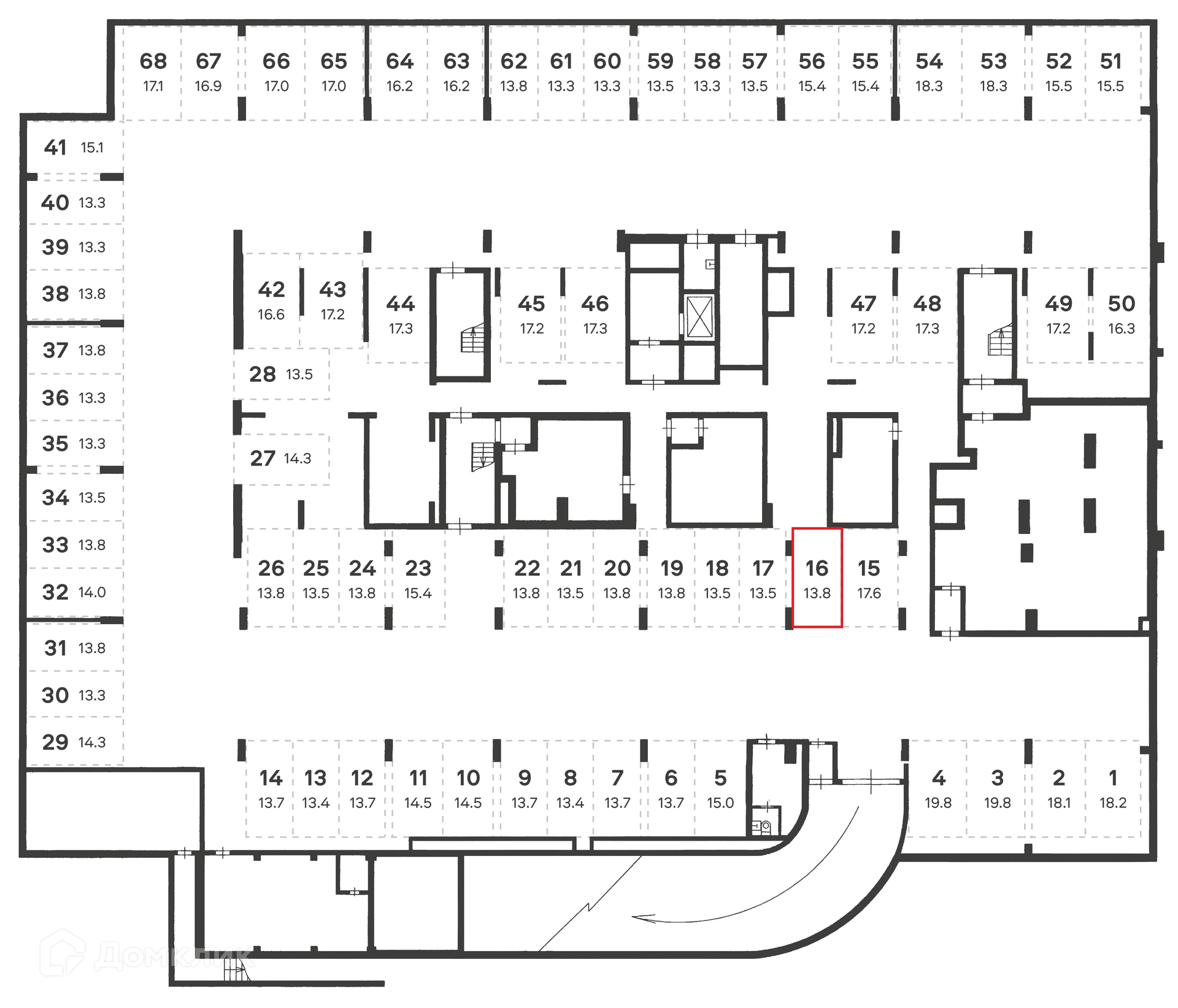 Общая площадь 13.8 м2