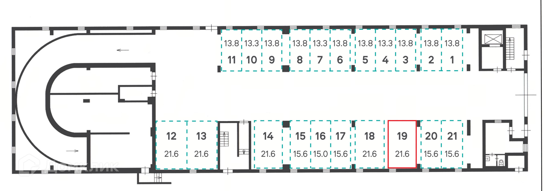Общая площадь 21.6 м2