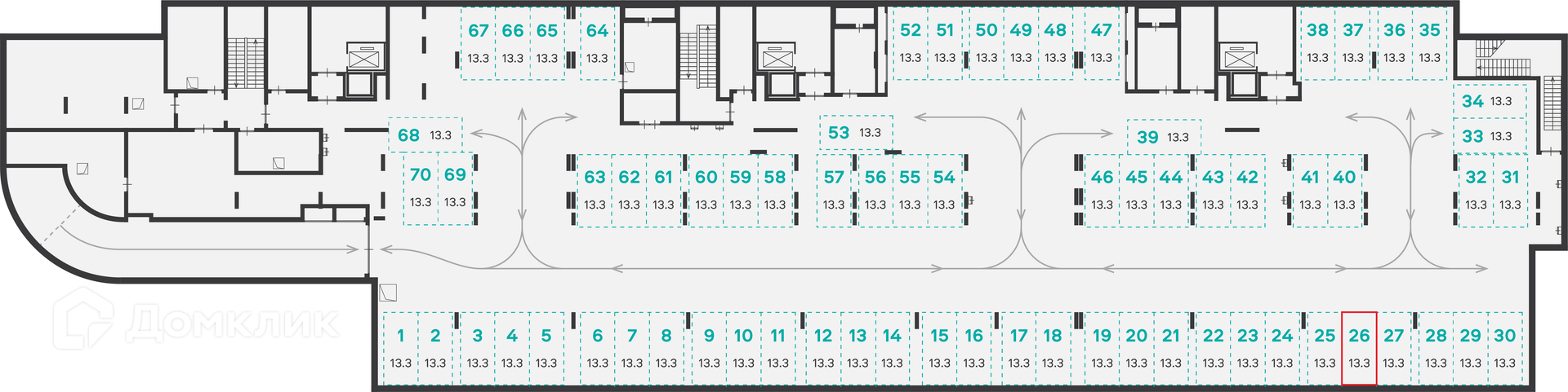 Общая площадь 13.3 м2