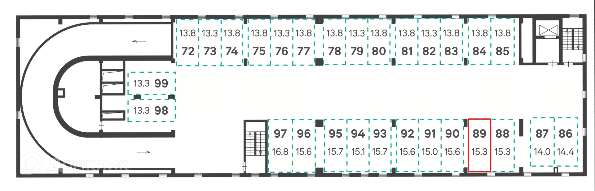 Общая площадь 15.3 м2