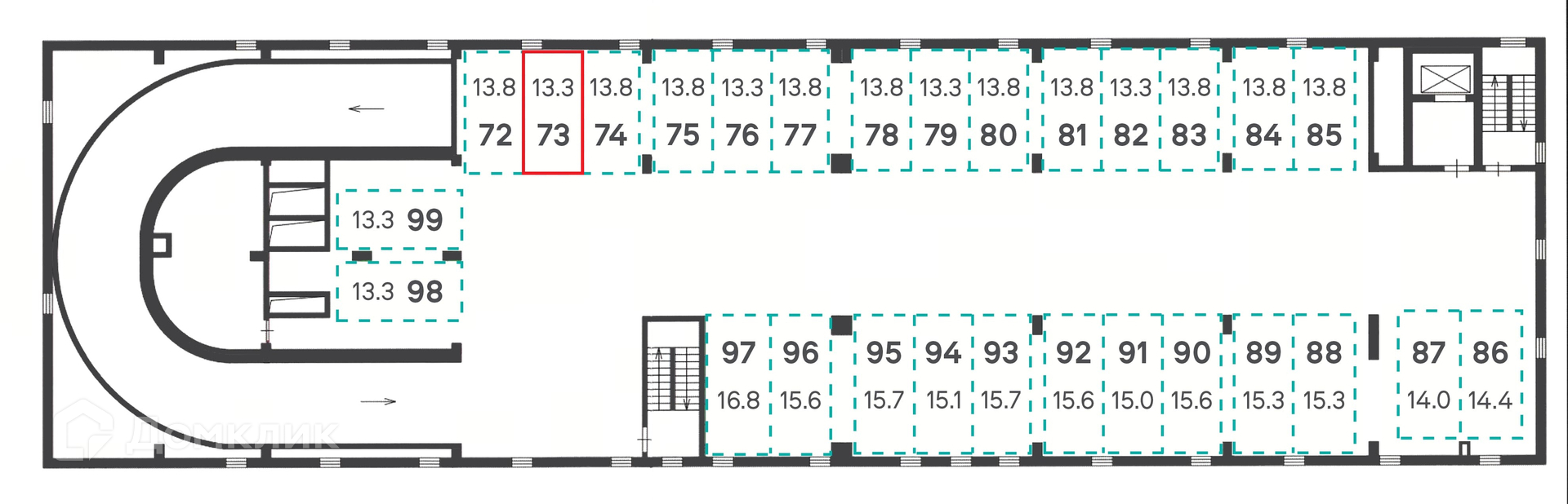 Общая площадь 13.3 м2