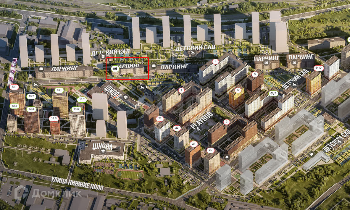 В проекте 54 жилых корпуса, три школы, семь детских садов, поликлиника. В районе есть все условия для комфортной жизни: торговые центры, школы, детские сады, поликлиники и спортивные центры. Рядом находятся усадьба Люблино, скверы и парки. Различные магазины, кафе и другие сервисы откроются на первых этажах, а на подземных будут паркинги с удобной навигацией. В зелёных дворах без автомобилей мы построим детские площадки и места для отдыха. А ещё "Люблинский парк" стал третьим проектом ПИК с большой игровой площадкой PlayHub, которая уже открылась между 1-м и 2-м блоками на безопасном расстоянии от дороги. Новое детское пространство "Остров" воплощает идею бесконечной игры. Ландшафт площадки - это ещё и игровой элемент, который помогает детям придумывать множество самых разнообразных игр. Здесь интересно детям разного возраста - от малышей до подростков.