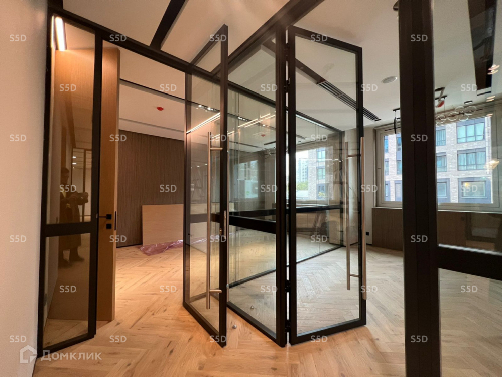 Канальное кондиционирование, приточной-вытяжная вентиляция, светодиодное освещение, СКУД по технологии Face ID c учетом рабочего времени и доступом через мобильное приложение, офис без проводов - все провода проходят через пол и подходят к столам по ножкам через скрытые каналы.
