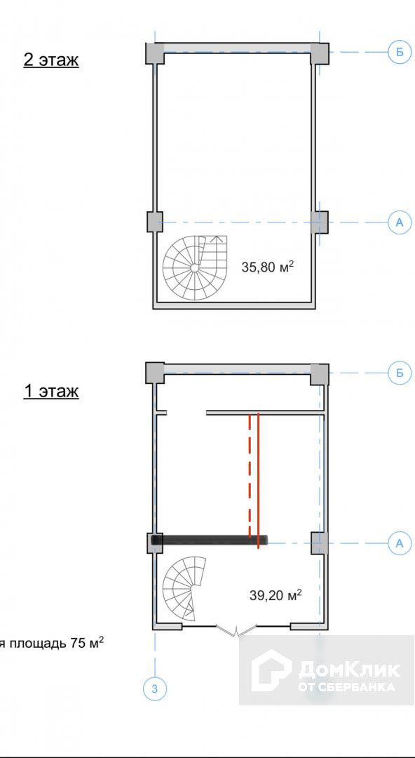 Общая площадь 75 м2