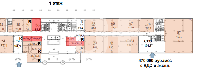 Общая площадь - 194 кв. м. Этаж 1 Готовность - готово к въезду. Всего этажей - 7. Цена 250 000 руб. за кв. м. Цена за помещение - 48 500 000 руб. Налоги - НДС включен.