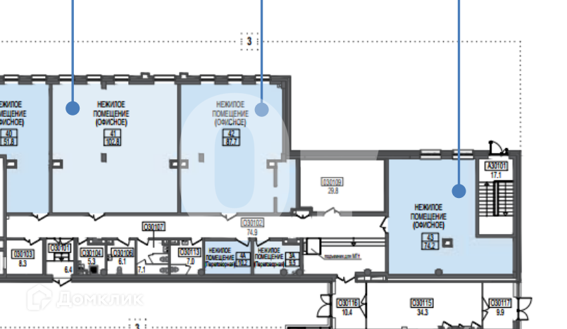Офисное помещение, состоит из  соседних офисов 102,5 и 87,5 кв.м. и блока 74,2.