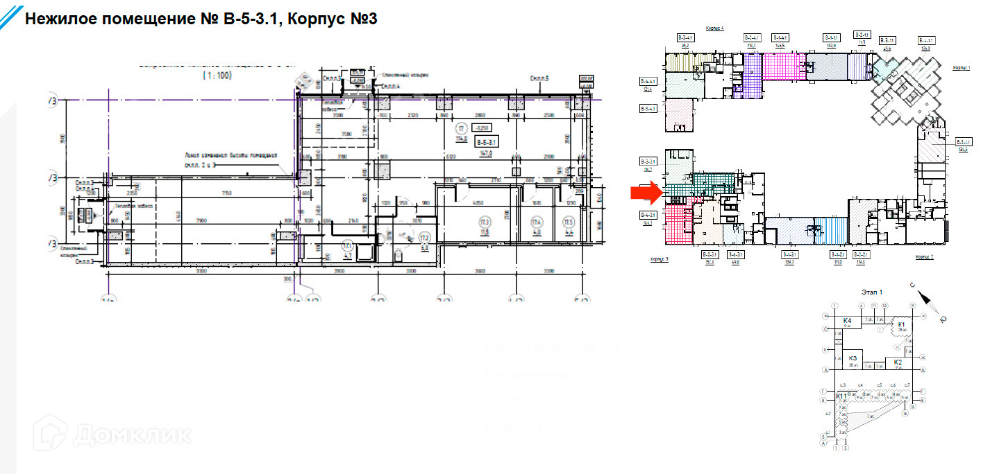 - Высота потолков: 4.5 м;