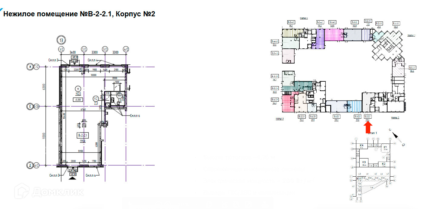 - Высота потолков: 4.5 м;