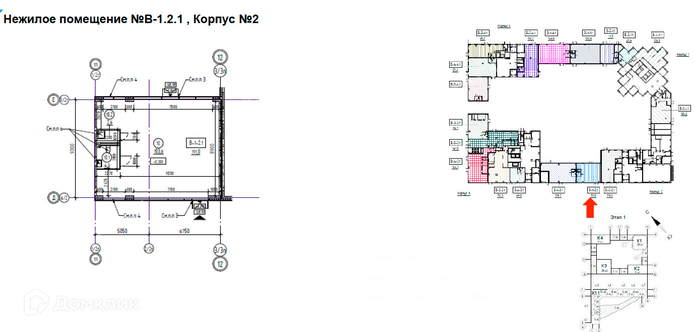 - Высота потолков: 4.5 м;